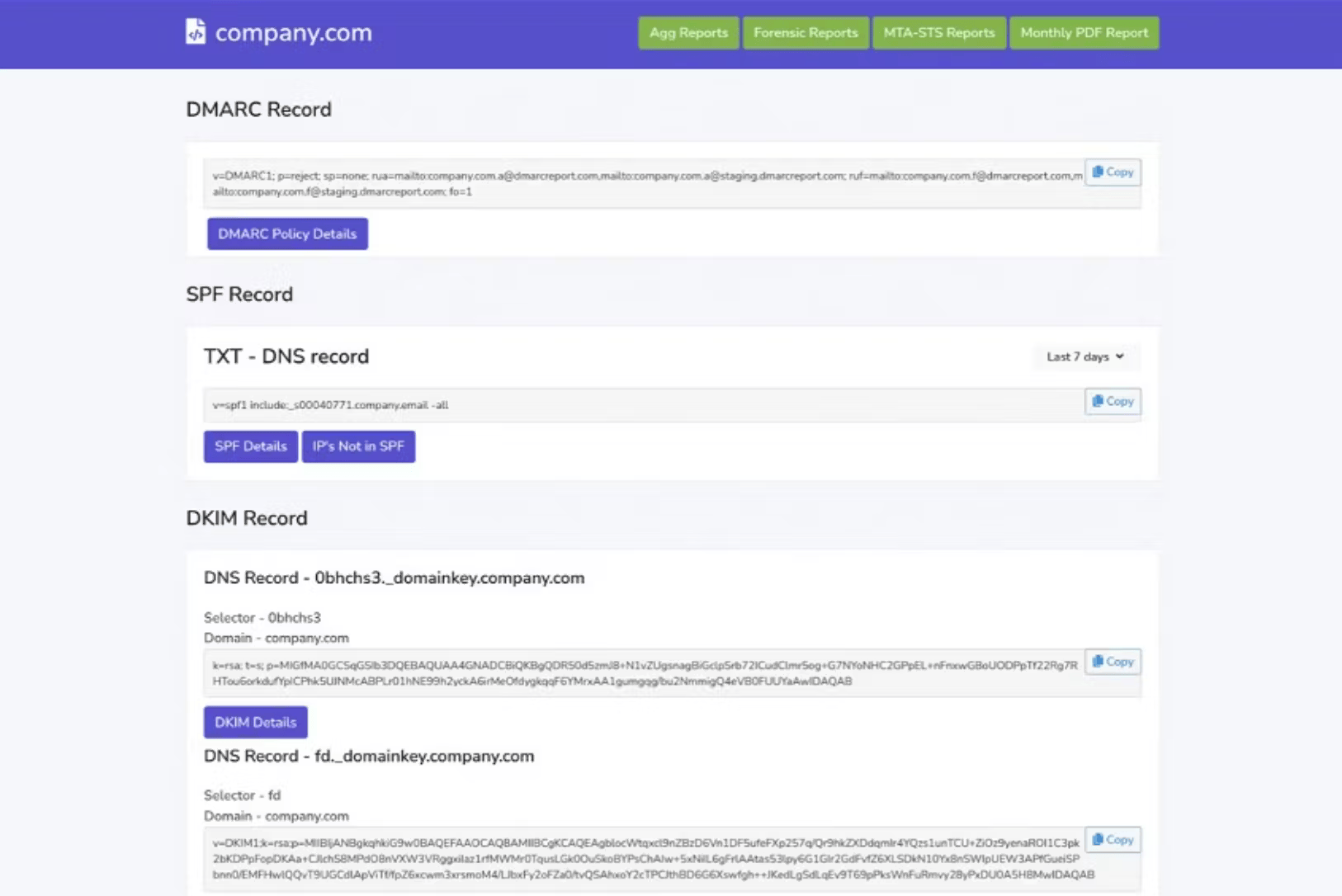 Our experience with DMARC Report's user interface was generally positive, with a clear, logical structure that makes navigation straightforward. Setting up new domains and configuring DMARC records is guided by step-by-step instructions, which simplifies a process that can often be technically daunting. This ease of setup is a significant advantage, particularly for users who may not be deeply entrenched in DNS management.